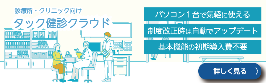 「タック健診クラウド」は年会費と従量課金の料金体系を準備しており、受診者数の少ない施設やこれから健診を始める施設にとっては、採用しやすい料金体系でしょう。