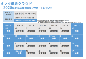 2025年度年末年始の保守体制に関しまして、下記のとおりご案内申し上げます。